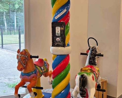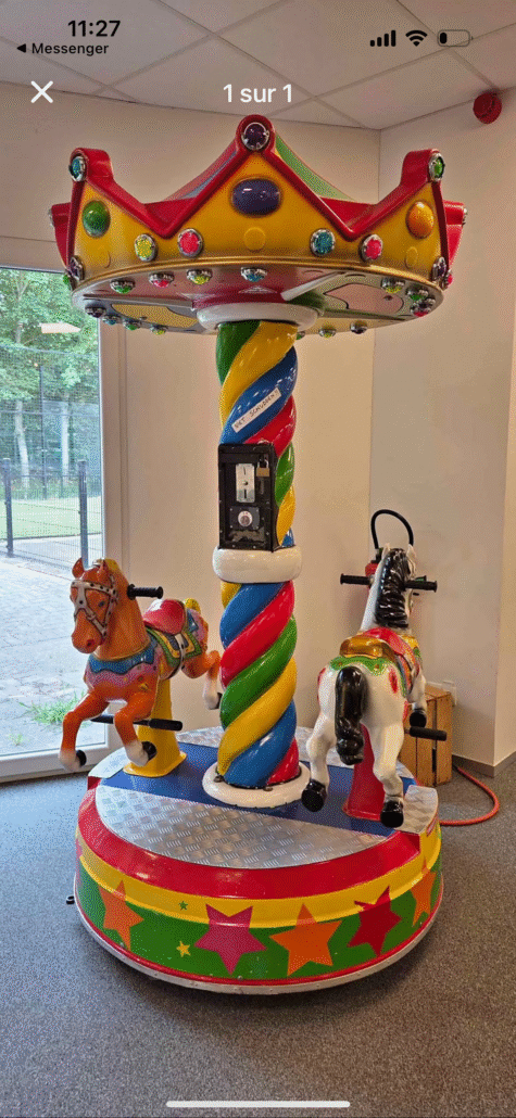 Apportez une touche de magie et de nostalgie à vos événements avec ce charmant manège pour enfants à deux chevaux. Coloré, compact et visuellement très attractif, il attire immédiatement l’attention des plus petits… et des parents !