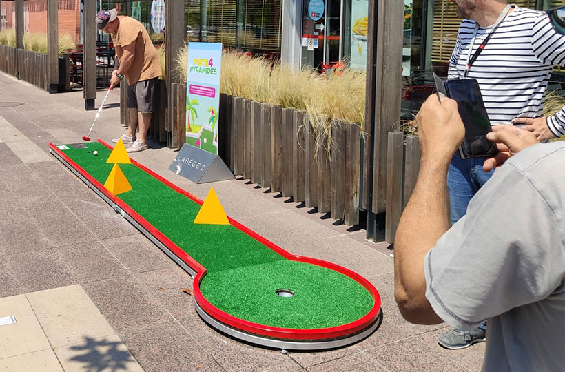 Ajoutez une animation conviviale, accessible et intergénérationnelle à votre événement avec notre mini-golf modulable jusqu’à 9 pistes !